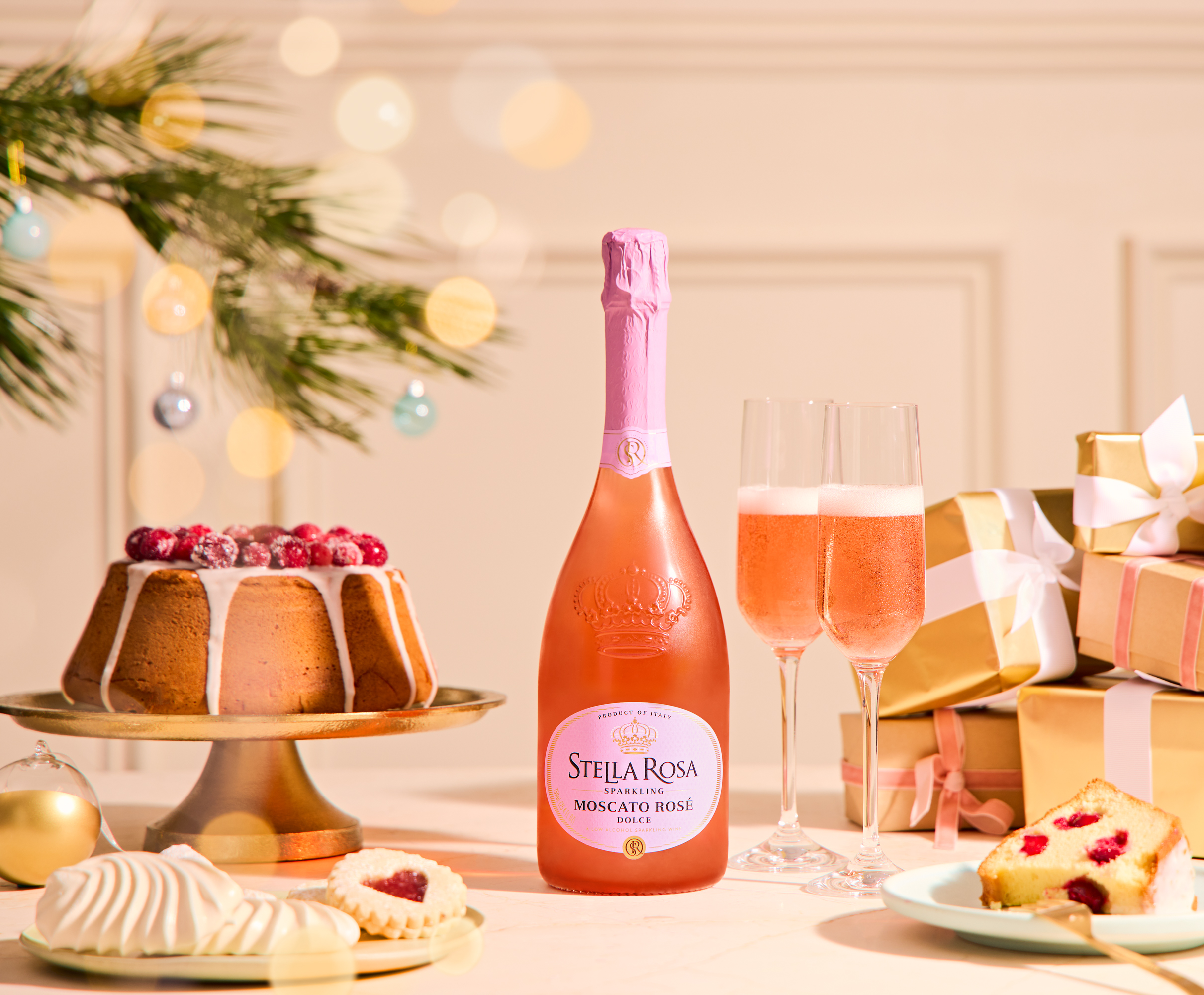 - Add Stella Rosa Sparkling Moscato Rosé before serving.